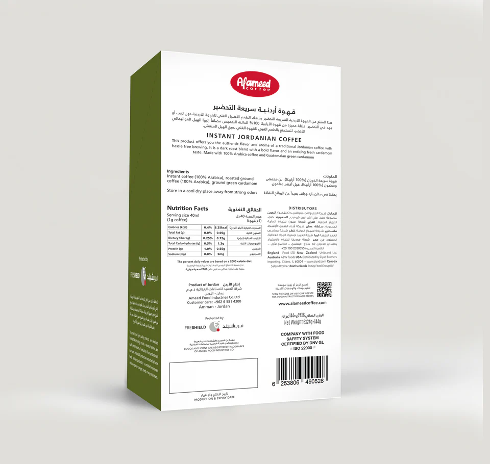 AL AMEED INSTANT JORDANIAN COFFEE (6 Sticks x 144 g) قهوة أردنية سريعة التحضير