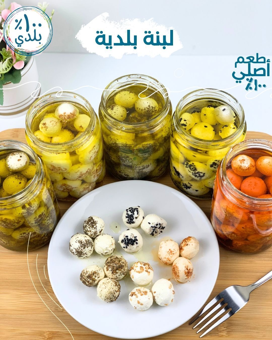 لبنة كرات مكعبلة بالزيت مصنوعة من الحليب الطازج