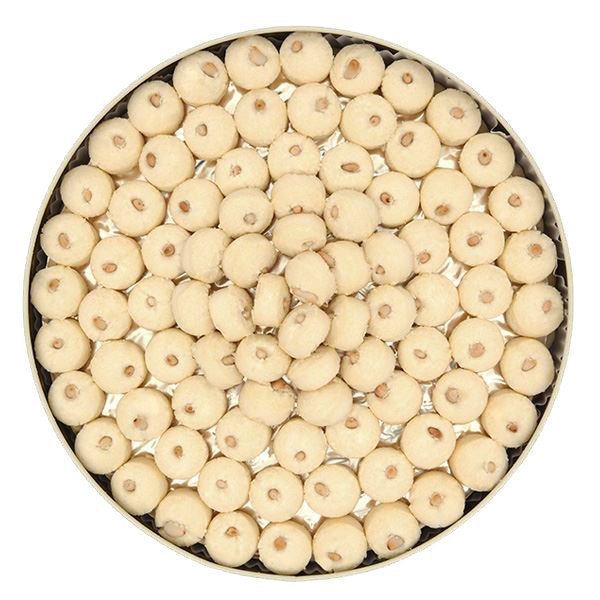 قطع دائرية صغيرة مصنعة من عجينة خاصة ومزينة من أفخر أنواع الصنوبر ، والتي تذوب بالحواس عند تناولها